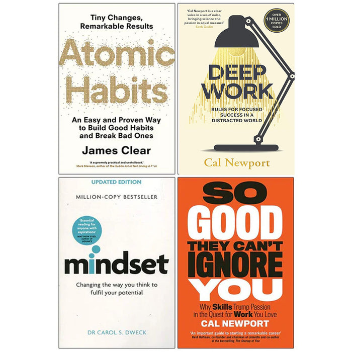 Atomic Habits, Deep Work, Mindset Dr Carol Dweck, So Good They Can't Ignore You 4 Books Collection Set