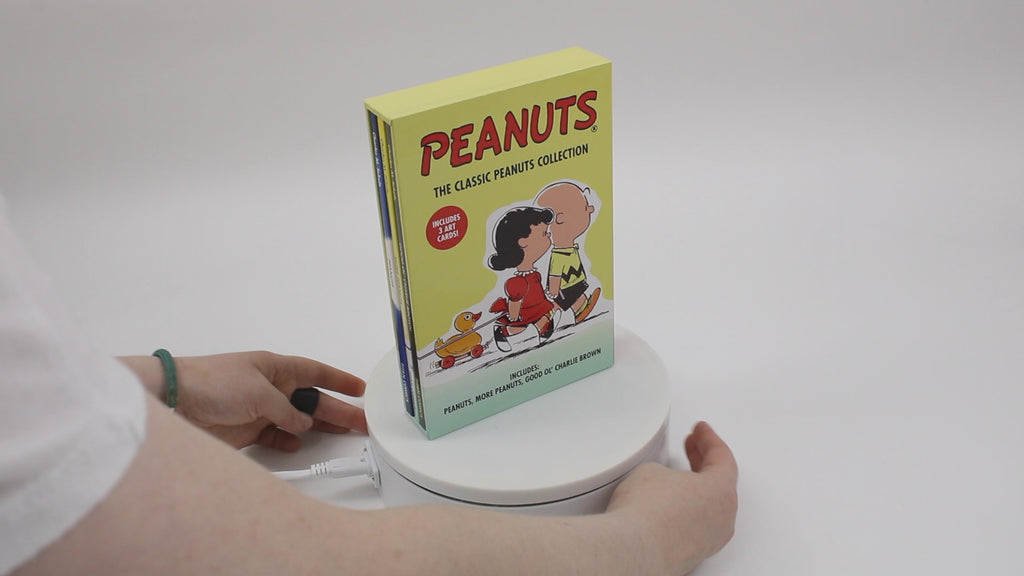 A box-set facsimile collection of three classic Peanuts comic strip books – Peanuts, More Peanuts and Good Ol’ Charlie Brown. With each book containing 128 pages, that’s over 360 pages of classic Peanuts daily and Sunday newspaper comic strips to enjoy. Including art cards featuring the cover art from the individual books.