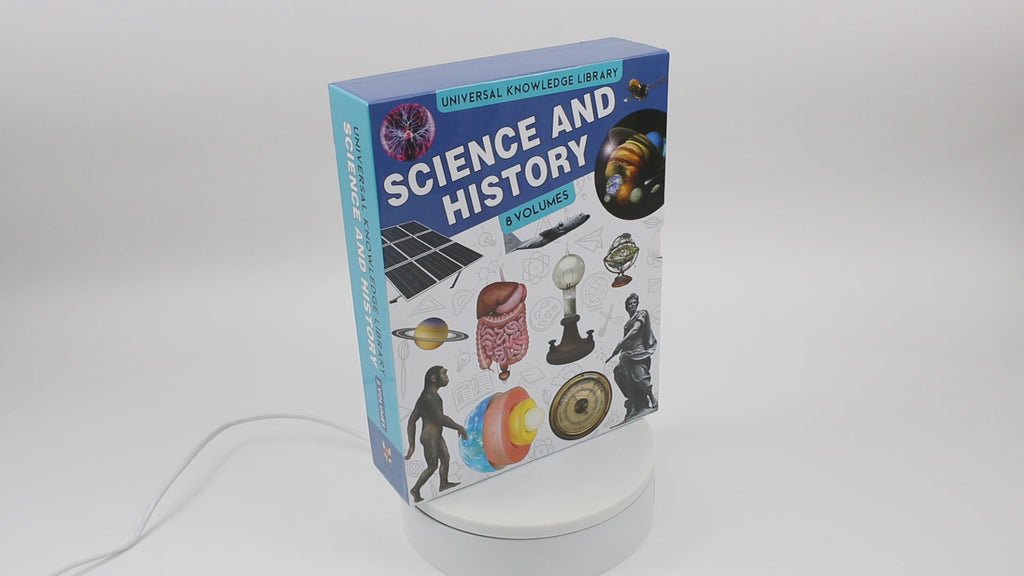 Introduction: Welcome to the Universal Knowledge Library, a magical collection that opens the door to the wonders of science and history. These eight beautifully illustrated books will take you on exciting adventures, where you'll explore ancient civilizations, discover amazing inventions, and learn about the mysteries of the universe. Get ready to embark on a journey of discovery and wonder!