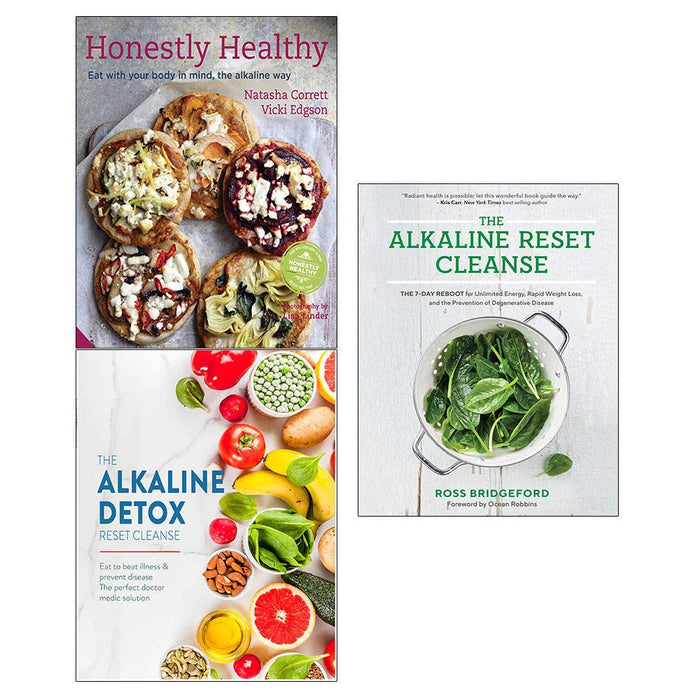 Alkaline reset cleanse [hardcover], honestly healthy [hardcover], the alkaline detox reset cleanse 3 books collection set. Description:- The Alkaline Reset Cleanse: The 7-Day Reboot for Unlimited Energy, Rapid Weight Loss, and the Prevention of Degenerative Disease The Alkaline Reset Cleanse is a different way of thinking about the body and how we can rapidly replenish, heal, and reboot ourselves back to optimal health. The body's number-one goal is to maintain homeostasis and balance throughout our Five Master Systems: endocrine, immune, digestive, detoxification, and alkaline buffering (pH balancing). But through our dietary and lifestyle choices, we often put our body into a state of emergency. It is this constant state of emergency from which sickness and disease emerge. Honestly Healthy: Eat with your body in mind, the alkaline way Honestly Healthy is the original alkaline diet cookbook, packed with recipes, tips and tricks to help you look and feel great. Whatever your needs – be it a short cleanse or total eating habit overhaul – Honestly Healthy has the right plan for you. With over 100 mouthwatering recipes from gourmet vegetarian chef Natasha Corrett, all designed with nutritionist Vicki Edgson to help your energy levels soar, split into breakfasts and smoothies, starters and soups, mains, snacks and treats, and desserts, you will find everything you need. The Alkaline Detox Reset Cleanse: Eat to beat illness & prevent disease. The perfect doctor medic solution