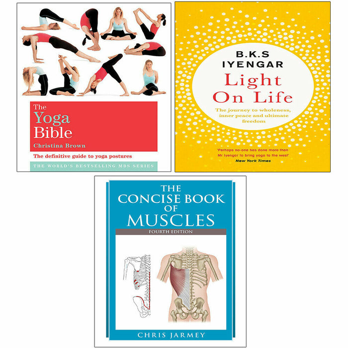 Concise Book of Muscle Chris Jarmey,Light on Life,Classic Yoga Bible 3 Books Set