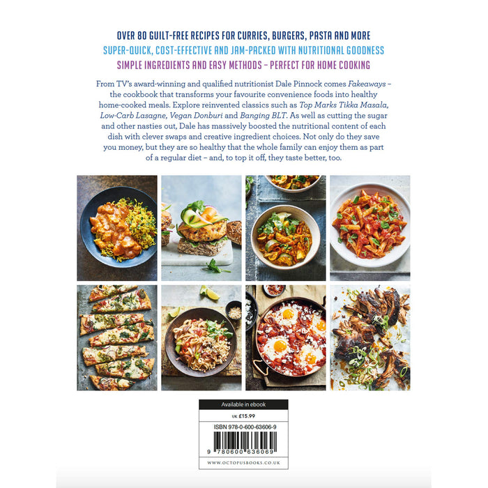 Everyone loves a takeaway, but we have never been more aware of the impact they can have on our health and our wallets. In Fakeaways award-winning chef and qualified nutritionist Dale Pinnock shows you how to create healthy alternatives to your favourite takeaways at home. From Top Marks Tikka Masala to Vegetable Chow Mein, Aubergine Parmigiana, Chicken Yakitori and Beginners Sushi to all-time classics such as Fish and Chips and "Kould-Be" Fried Chicken - a night in has never sounded so delicious.