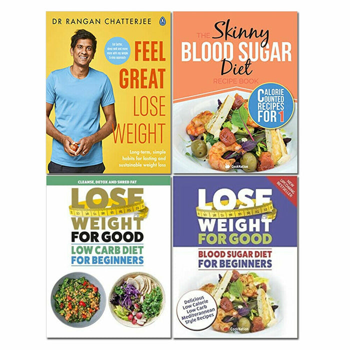 Feel Great Lose Weight, Low Carb Diet, Skinny Blood Sugar Diet 4 Books Set