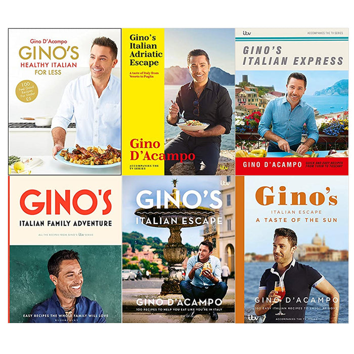 Gino's Italian Series By Gino D'Acampo 6 Books Collection Set Hardcover (Gino's Healthy Italian for Less, Adriatic Escape, Express , Family Adventure, Escape, A Taste of the Sun)