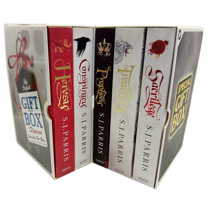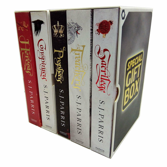 Giordano Bruno Series S. J. Parris Collection 5 Books Bundles Special Perfect Gift Wrapped Slipcase Specially For You.Titles In This Set:-Prophecy,Sacrilege,Heresy,Treachery,Conspiracy.Heresy A vivid and gripping historical thriller set in Elizabethan England introducing Giordano Bruno, philosopher, scientist and spy for all fans of C.J.Sansom and The Name of the Rose. Prophecy (Giordano Bruno 2) A Tudor thriller featuring Giordano Bruno, renegade monk, philosopher and heretic, for fans of C. J. Sansom and The Name of the Rose Autumn, 1583. The skies above England harbour dark omens … Sacrilege (Giordano Bruno 3) Perfect for fans of C.J. Sansom and The Name of the Rose, the third historical thriller featuring Giordano Bruno, heretic, philosopher and spy. London, 1584. Giordano Bruno travels to Canterbury for love. But finds only murder … Treachery Perfect for fans of C.J. Sansom and The Name of the Rose, the fourth historical thriller featuring Giordano Bruno, heretic, philosopher and spy. August, 1585. England is on the brink of war… Conspiracy The No. 1 bestseller – perfect for fans of C.J. Sansom – and the fifth historical thriller featuring Giordano Bruno, heretic, philosopher and Tudor spy. PARIS, 1585. Please note these are normal standard books supplied by publishers which are then gift Wrapped in a generic slipcase specially for you to create your very own special gift box set ideal for Christmas, Birthday and any other special occasion.