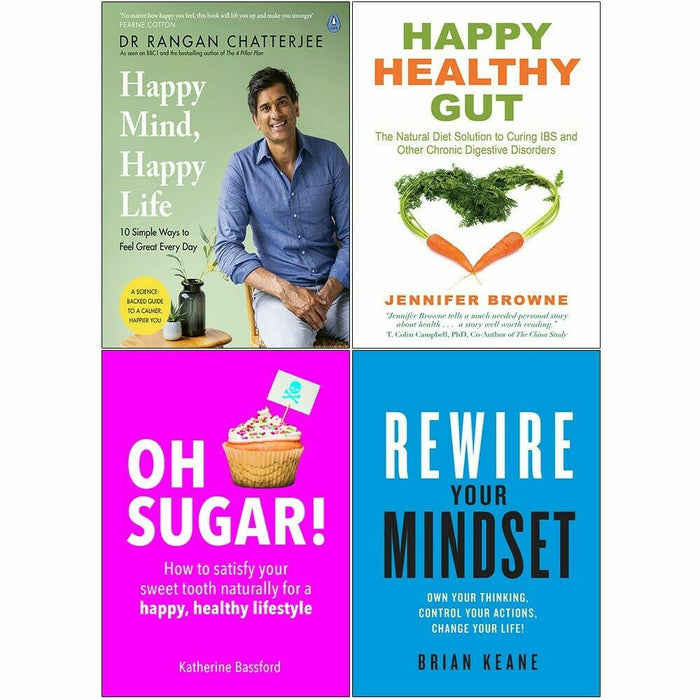 Happy Mind & Happy Healthy Gut, Oh Sugar, Rewire Your Mindset 4 Books Set: