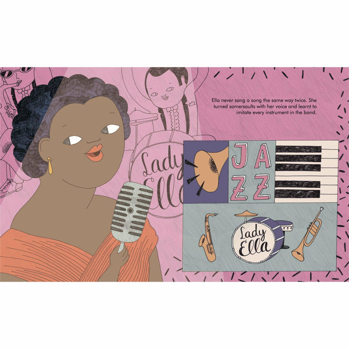 In these remarkable true stories, learn how three women overcame hardship to achieve great success in music. Ella spent her early years singing and dancing on the streets of Harlem. She went on to become one of the most famous jazz singers of the twentieth century. Dolly grew up poor in money but rich in love. She followed her musical passion to make her name as a world-famous singer songwriter and businesswoman. Josephine was born for the stage. She moved to Paris and found her audience, working as a dancer, and actor – and even a French Resistance agent. Each of these moving books features stylish and quirky illustrations and extra facts at the back, including a biographical timeline with historical photos and a detailed profile of the woman's life.