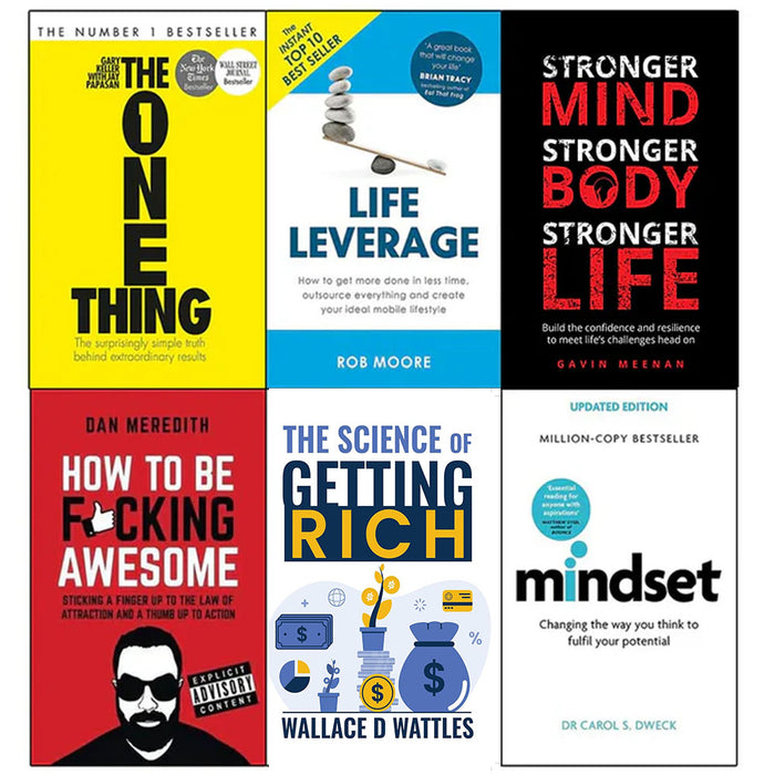 One thing, Life Leverage, Stronger Mind, How to Be Fucking Awesome, The Science of Getting Rich: and Mindset Carol Dweck 6 Books Collection Set