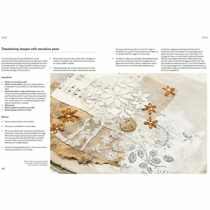 Textile artist and surface designer Mandy Pattullo marries fabric with collage techniques to produce beautiful pieces of art. In Textile Collage she shows a fresh way to use scraps and oddments of fabrics to create something unique and personal, while also being economical perfect for those who have hoarded bits of fabric, trim and memory-filled domestic textiles over the years. Chapter one covers 'Materials': collecting and sourcing fabric including unpicking and storing found fabric. In chapter two, 'Make', Mandy guides you through all the artistic and creative elements that you need to consider to create a beautiful collage. The following chapter 'Portray' looks at piecing together a collaged portrait human or animal showing the figurative approach in collage work that includes transfer images and using found photographs. In the chapter 'Worn', the collage technique is used to embellish skirts, jackets and accessories. The final chapter 'Book' looks at the fabric book as a receptacle for textile collage, with a range of approaches and forms explored. This is a wonderful resource for all textilers looking to make the most of the found fabrics they love and fully explore the technique of collage with textiles.