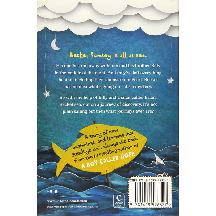 Becket Rumsey is all at sea. His dad has run away with him and his brother Billy in the middle of the night. And they've left everything behind, including their almost-mum Pearl. Becket has no idea what's going on - it's a mystery. So with the help of Billy and a snail called Brian, Becket sets out on a journey of discovery. It's not plain sailing but then what journeys ever are? An extraordinary story of courage, dreams and finding your way, from the bestselling author of A Boy Called Hope (shortlisted for the 2014 Waterstones Book Prize).