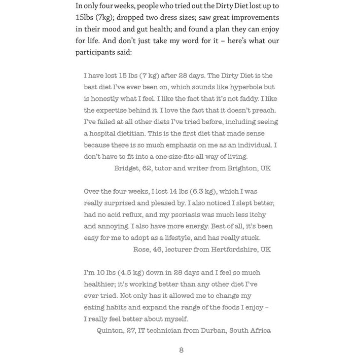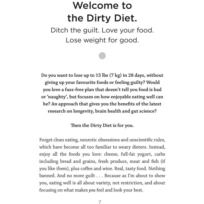 From Kate Harrison, the bestselling author behind the 5:2 Diet Book series, comes the brand new 4-week plan that will have you losing weight for good - without cutting out the foods you love. The Dirty Diet combines the revolutionary successes of fasting with the latest scientific findings about gut health. What does this mean? Results! Eat 600-700 calories two or three days a week and 1800 calories for the rest - using Kate's delicious recipes and meal plans - and you'll not only be losing weight but be feeling rejuvenated and healthier too. With recipes including 'Fuss-free Eggs Royale', 'Fast Flatbread Pizza' and 'Chicken Pasta Bake', you'll also discover.