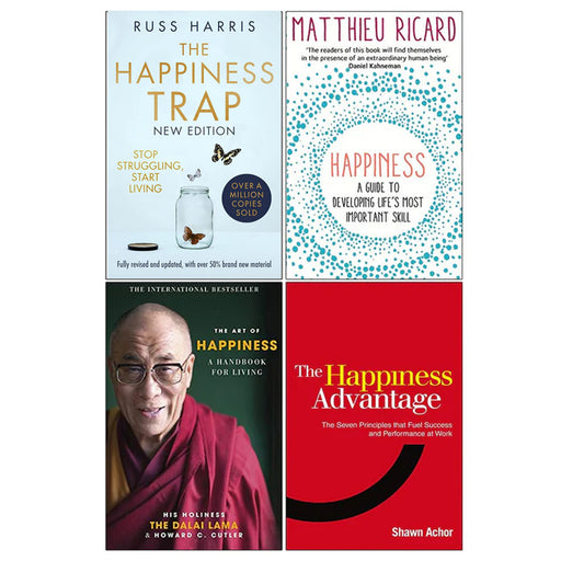 The Happiness Trap, Happiness A Guide to Developing Life's Most Important Skill, The Art of Happiness, The Happiness Advantage 4 Books Collection Set